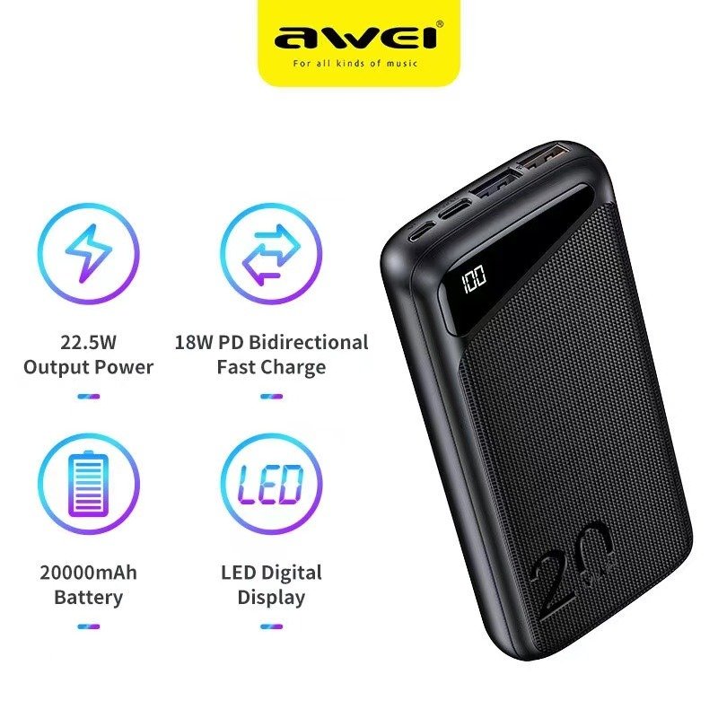 Awei P104K 20000mAh Dual USB Type-C Fast Charging 22.5W Power Bank