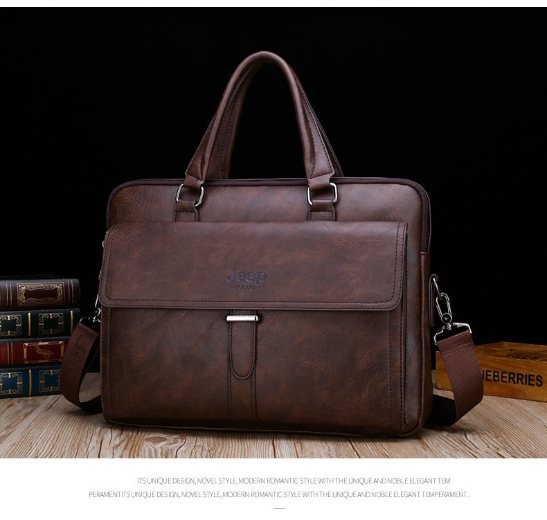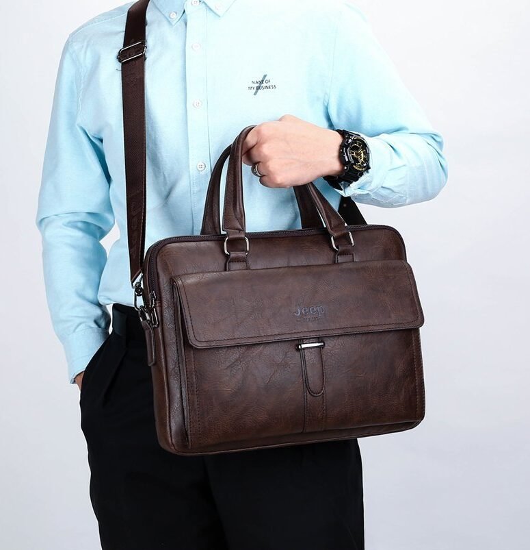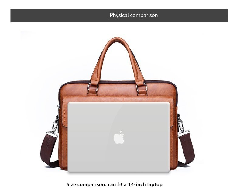 Leather pouch made from high quality materials which fits work with multiple pockets and laptop fits