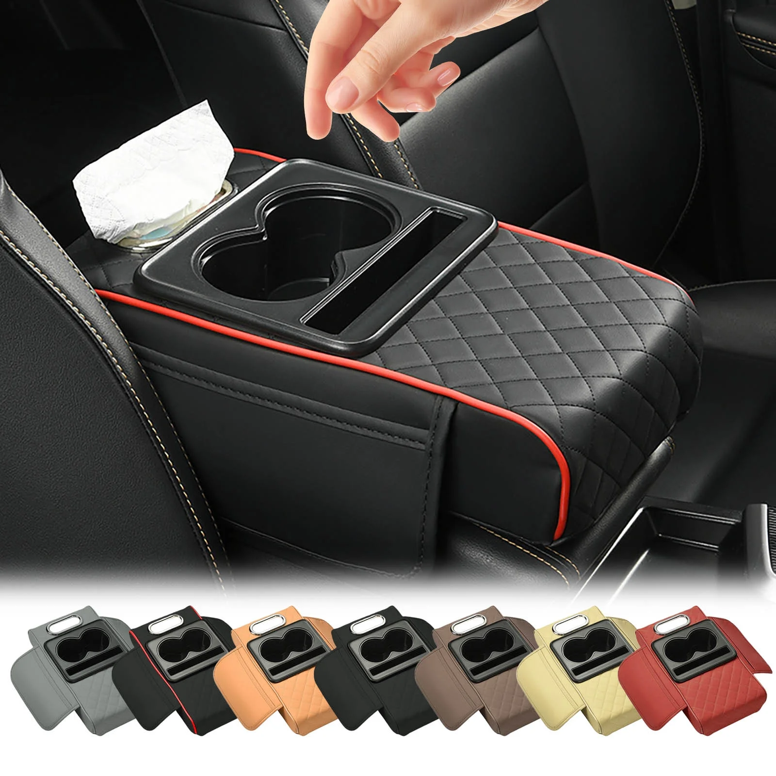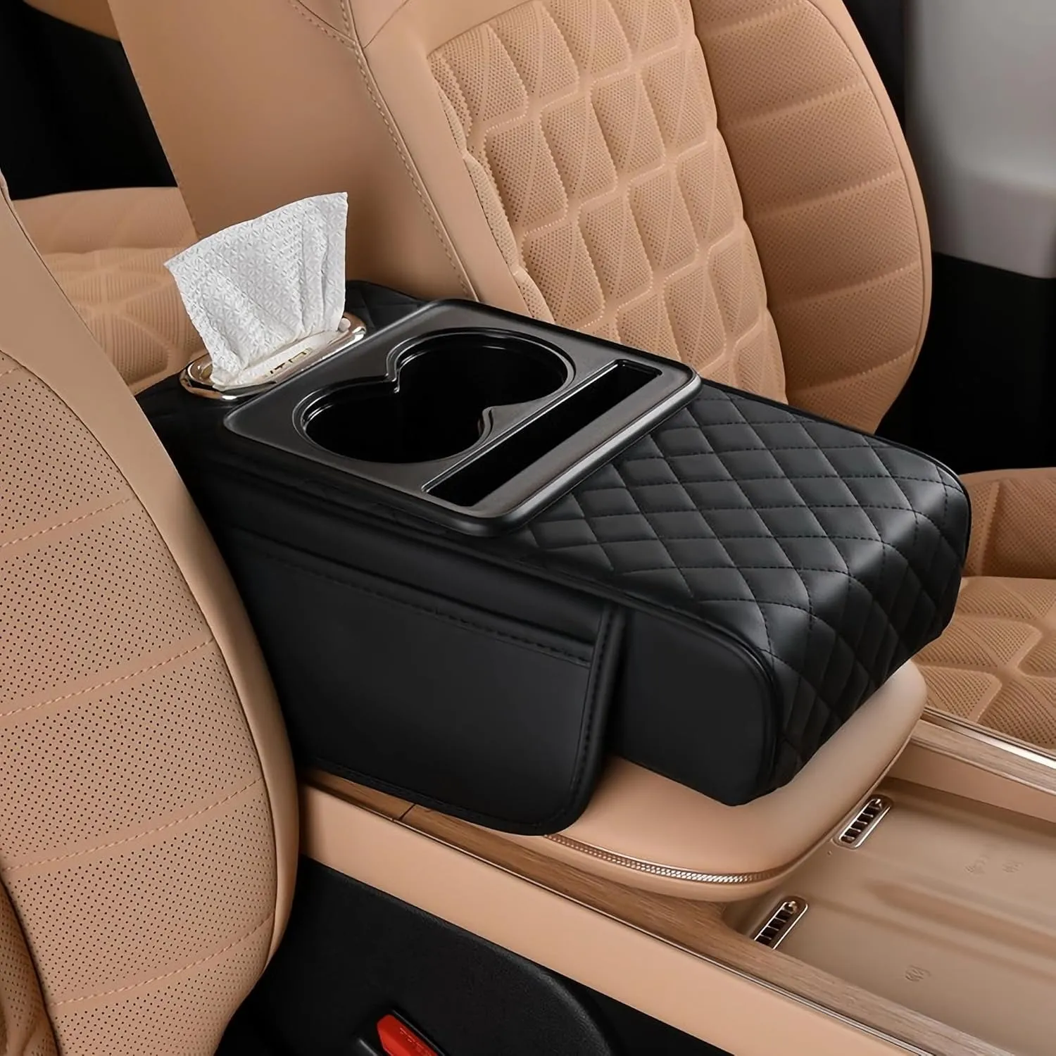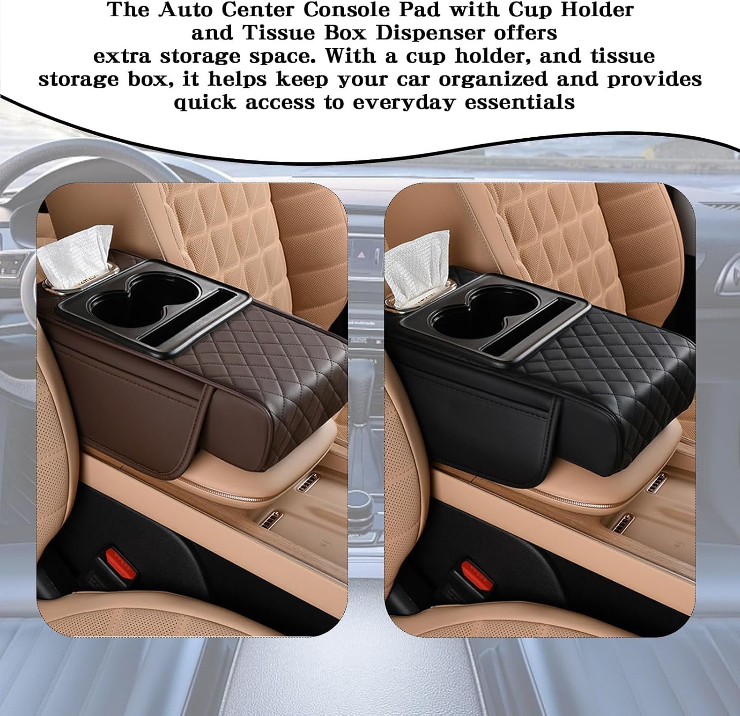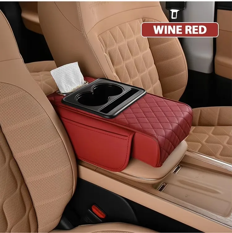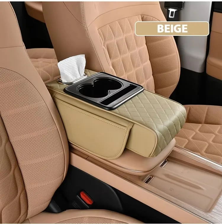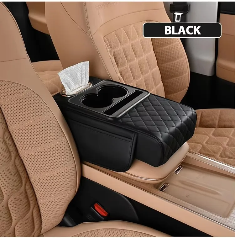 Universal Multifunctional Car Armrest Storage Box, Car Armrest Box Pad, Auto Center Console Pad with Cup Holder and Tissue Box Dispenser, Universal Arm Rest Cushion Pads