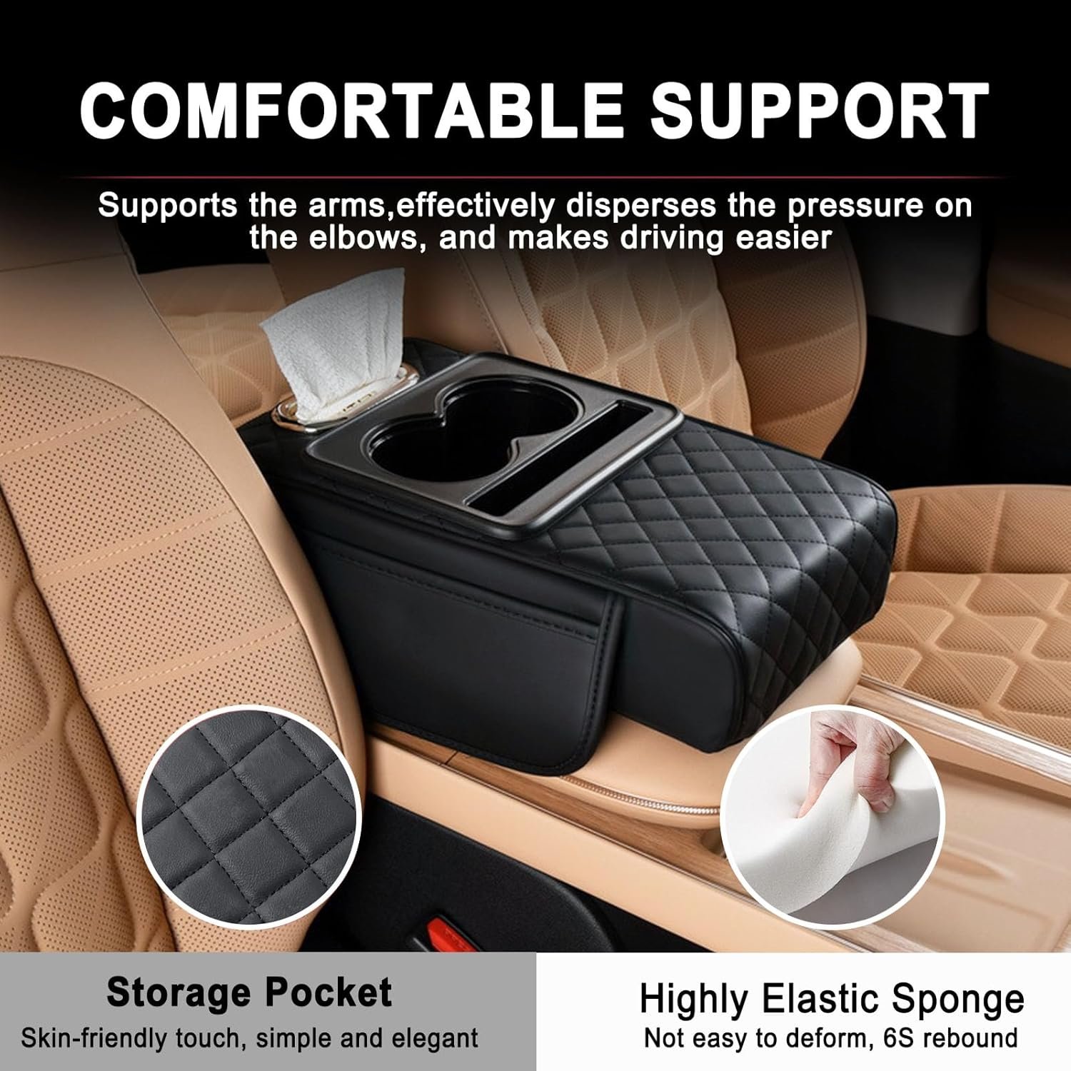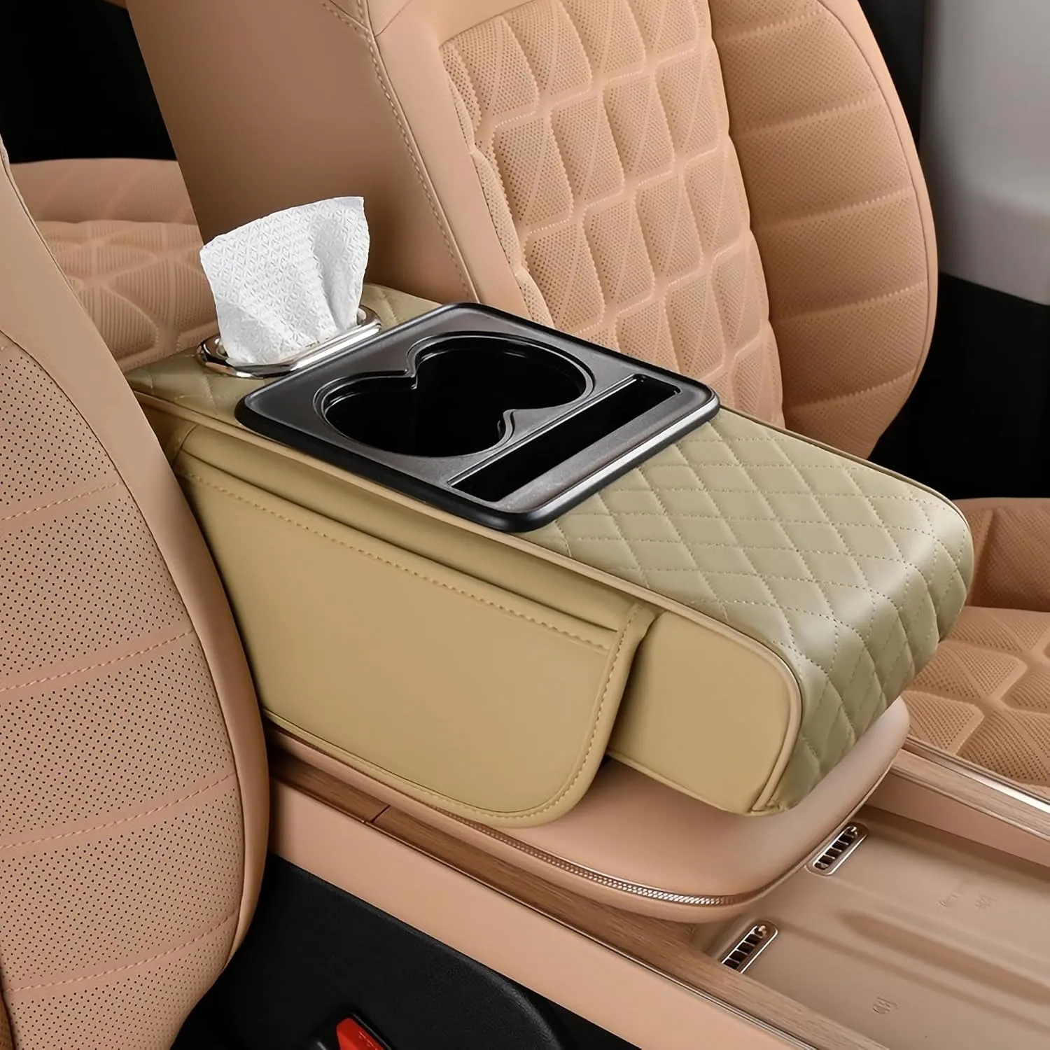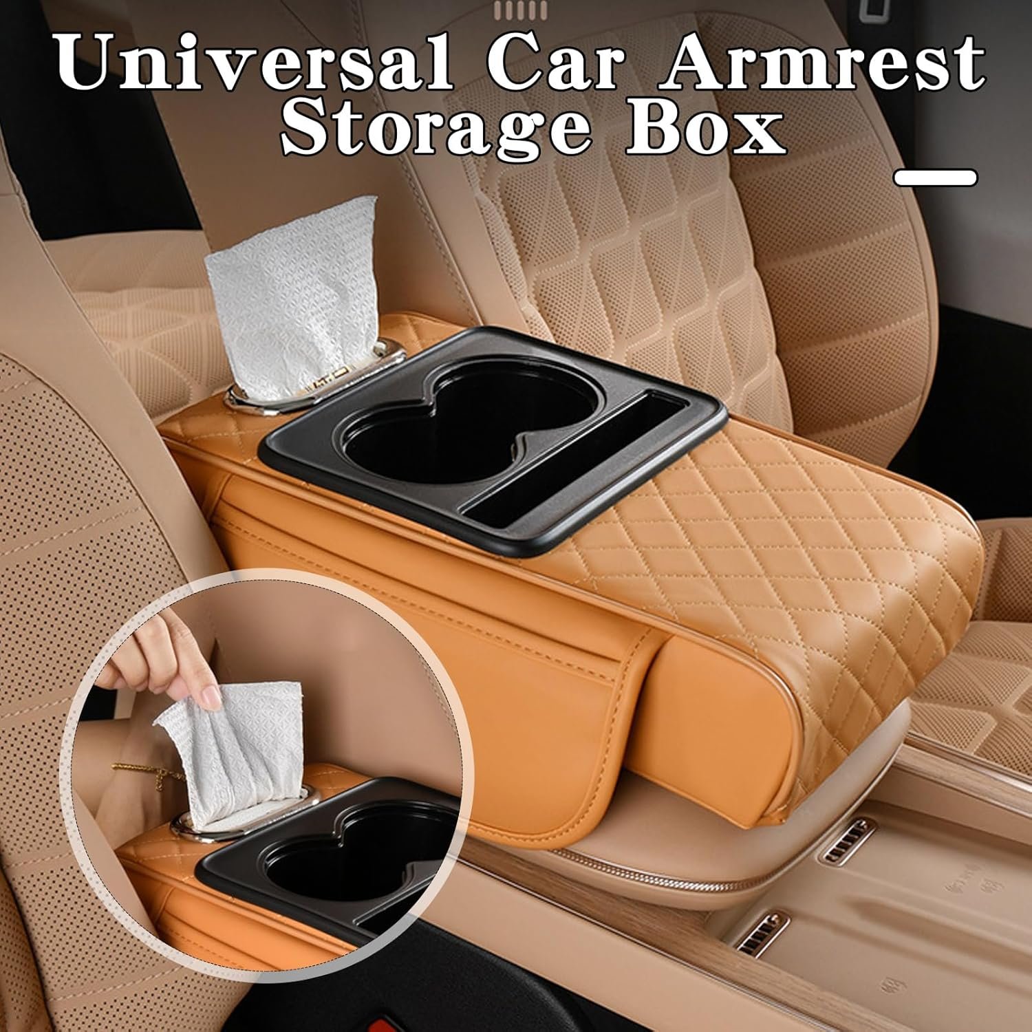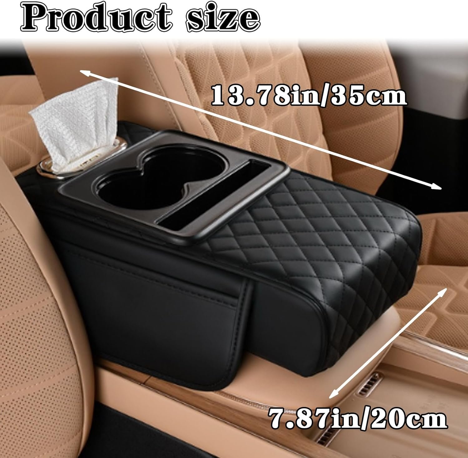 Universal Multifunctional Car Armrest Storage Box, Car Armrest Box Pad, Auto Center Console Pad with Cup Holder and Tissue Box Dispenser, Universal Arm Rest Cushion Pads