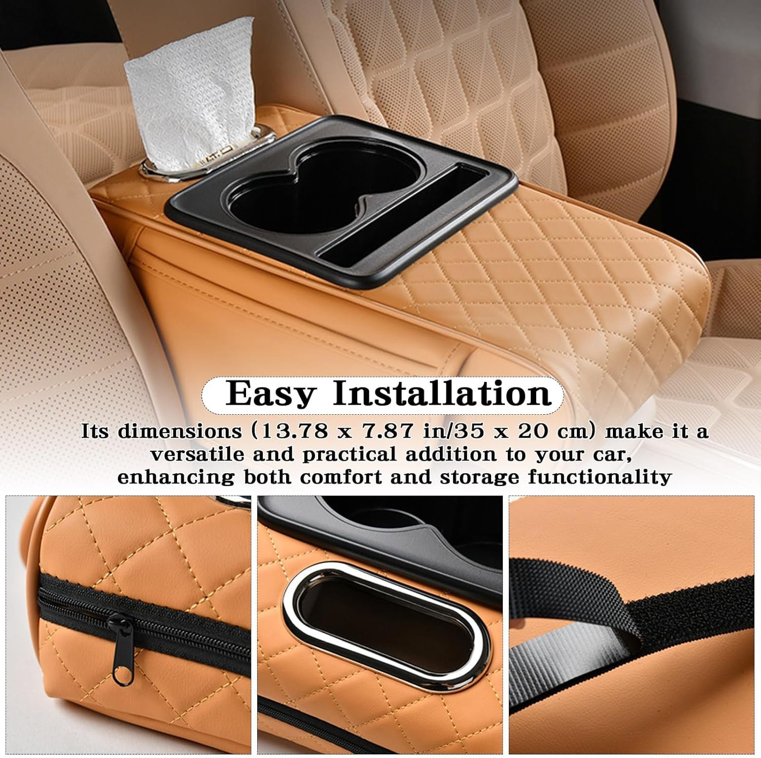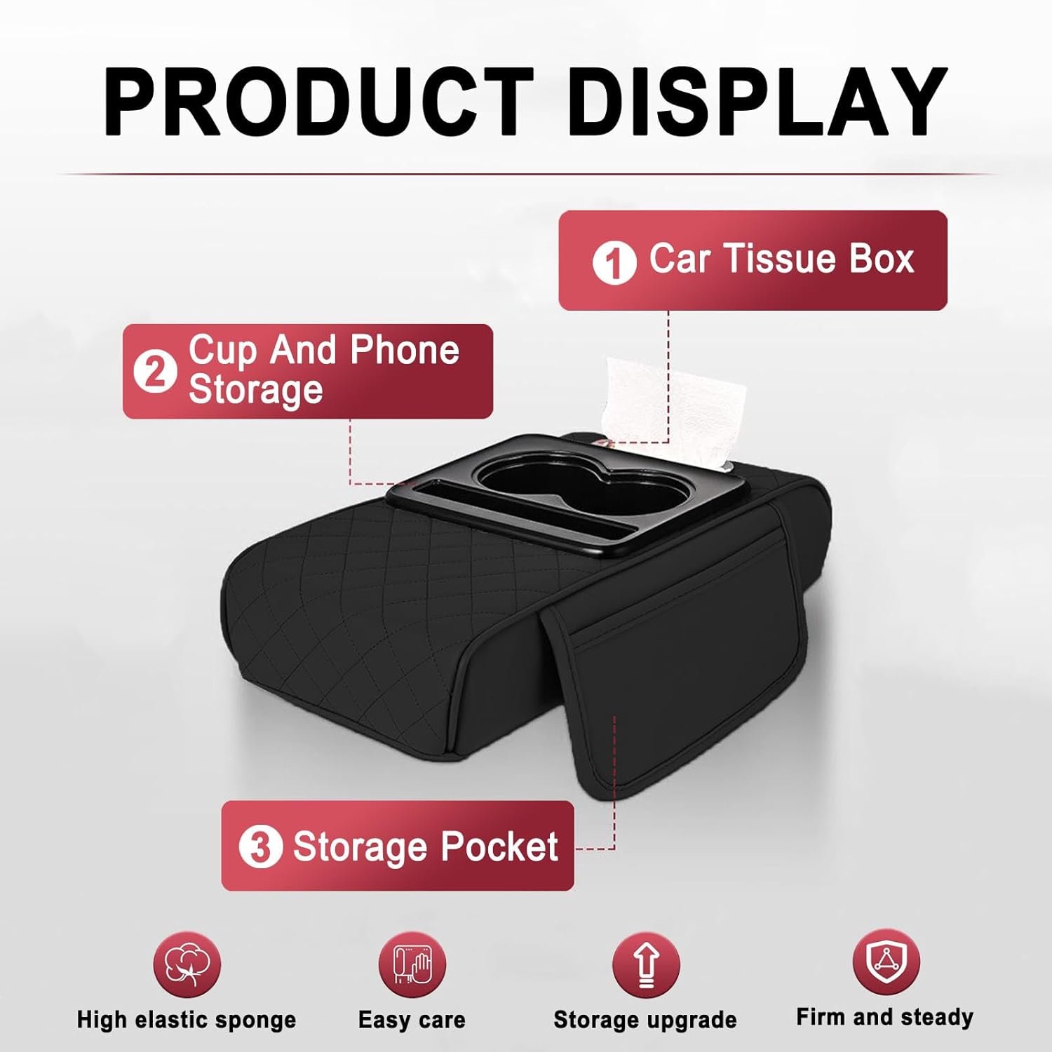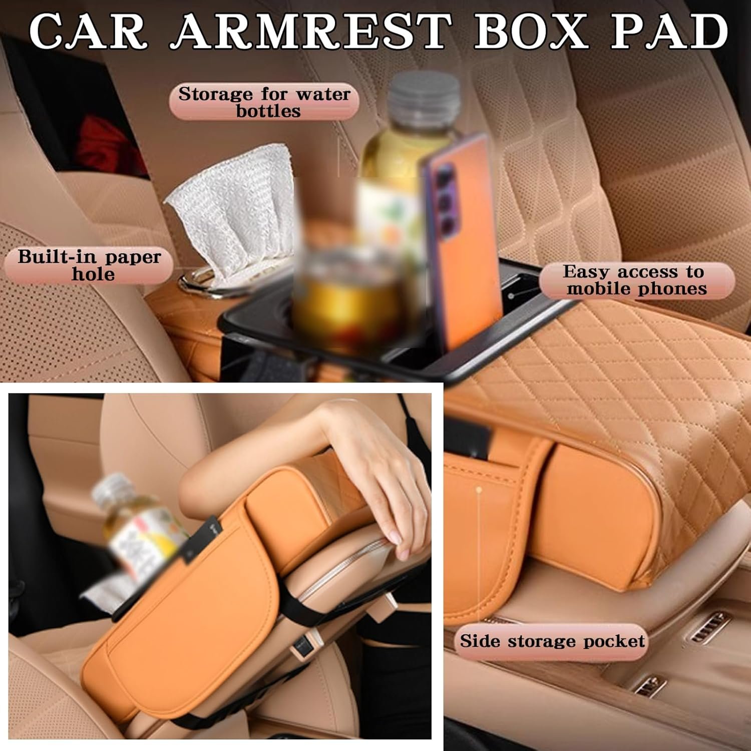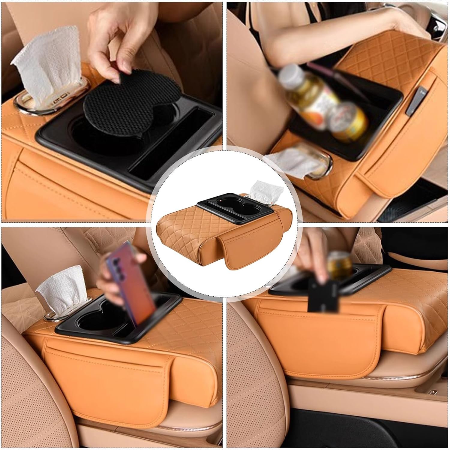 Universal Multifunctional Car Armrest Storage Box, Car Armrest Box Pad, Auto Center Console Pad with Cup Holder and Tissue Box Dispenser, Universal Arm Rest Cushion Pads